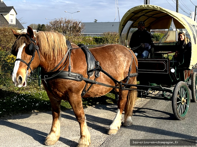 Nous avons 2 hippomobiles pour vous mener dans nos campagnes, une 5 places et une 8 places couverte, selon vos envies, selon le parcours, et selon la météo !